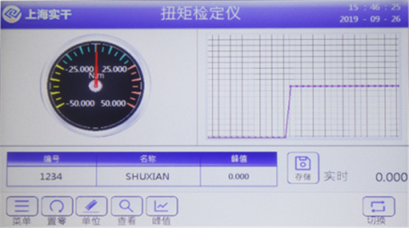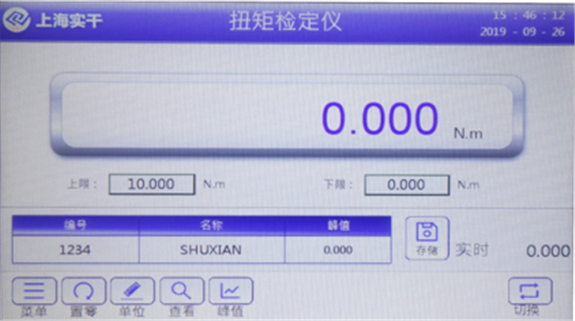 a、單位鍵,當(dāng)前單位不能測試要求時,可對著單位位置單擊,依次顯示單位(N·m、kgf·cm、lbf·in、lbf·ft),可輪流切換。